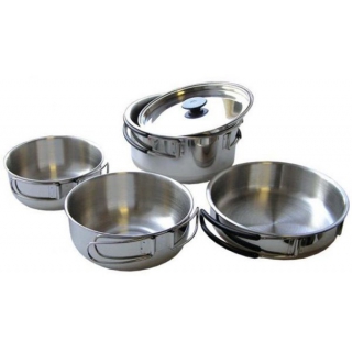 | Комплектація | -кастрюля (3 шт.)(0,6 л, 0,45 л, 1,0 л) -пательня (1 шт.) (0,55 см) -кришка (1 шт.) (на 1,0 л кастрюлю) -чохол для берігання |